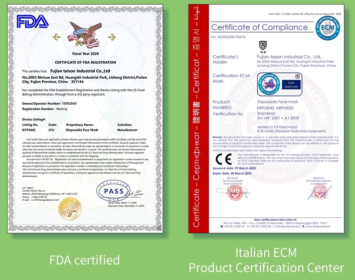 Disposable face masks act as a protective barrier to prevent splashes, sprays, large droplets, or splatter from entering the wearer’s mouth and nose.